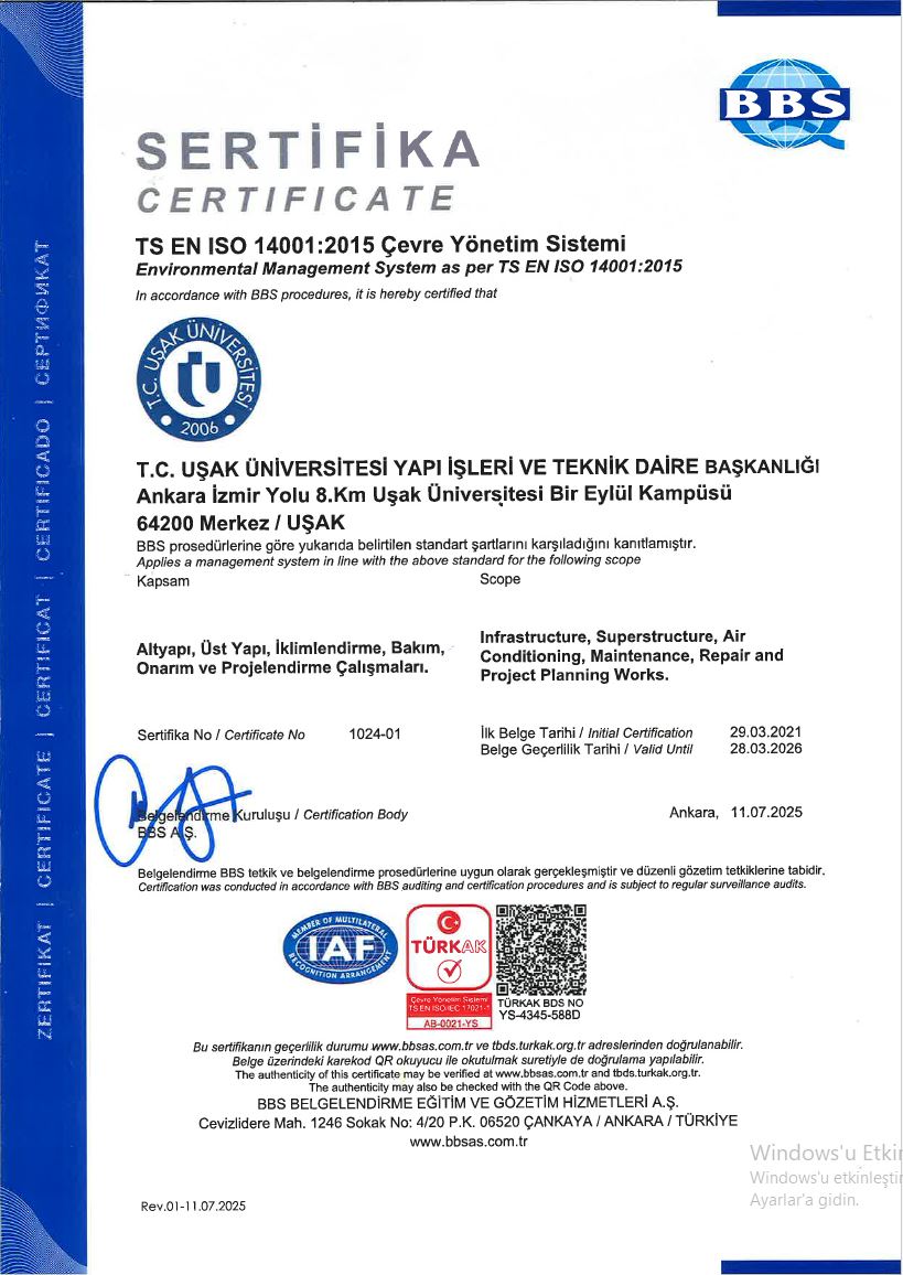 14001:2015 Çevre Yönetim Sistemi Belgesi